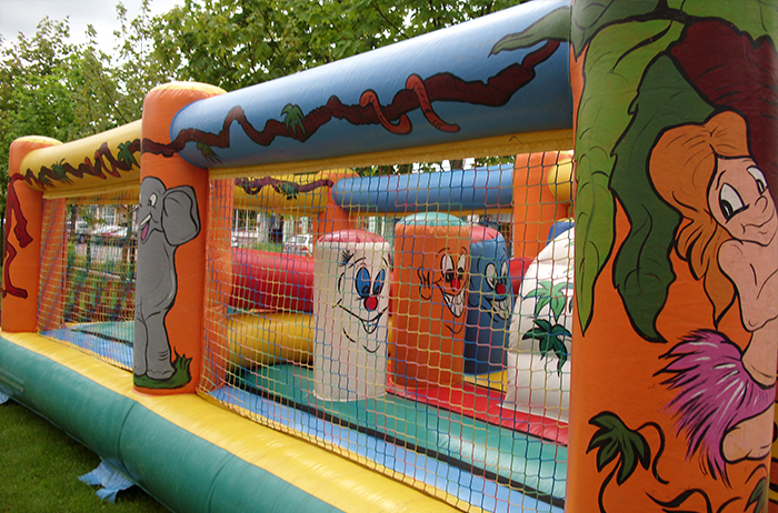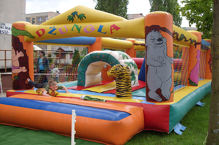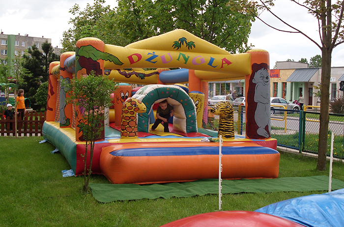 W naszej ofercie znajdą Państwo także duży zamek w kształcie dżungli. To dmuchana konstrukcja, wewnątrz której można skakać, fikać i upadać bez bolesnych konsekwencji. Zamek dżungla to stosunkowo duży dmuchaniec, w którym mogą się bawić zarówno małe dzieci, jak i te trochę starsze. Jest bajecznie kolorowy. Plac zabaw w klimacie dżungli, może być rozstawiony tam gdzie tylko zechcesz. Czy Twoje dziecko miało kiedyś okazję, bawić się ze zwierzakami rodem z ZOO? My posiadamy je na wyłączność. W naszej krainie dżungli mogą bawić się z m.in. lwem, zebrą, żyrafą? długo by wymieniać. Daj szansę swojemu dziecku pojeździć na zebrze albo ujarzmić zawsze wesołego lwa, u nas jest to możliwe w bezpiecznej oprawie.
