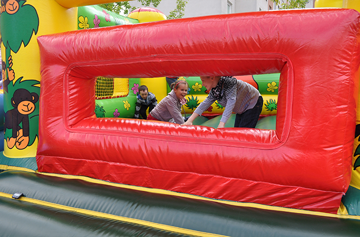 Konstrukcja, którą chcemy Państwu zaprezentować, to bezpieczny i bajecznie kolorowy zamek do skakania. Wewnątrz tego dmuchańca można śmiało brykać. Zamek ten jest przeznaczony dla młodszych dzieci a jego wymiary to 3,2x4,35 m i boki zabudowane do wysokości 2,25m. Zabawa we wnętrzach zamku jest świetna. Możliwość szalonej zabawy na całego, przy zachowaniu zasad bezpieczeństwa, ucieszy zarówno dzieci, jak i rodziców . Obecność takiego urządzenia na festynie czy pikniku jest obowiązkowa bo dzięki temu dzieciaki będą zachwycone!